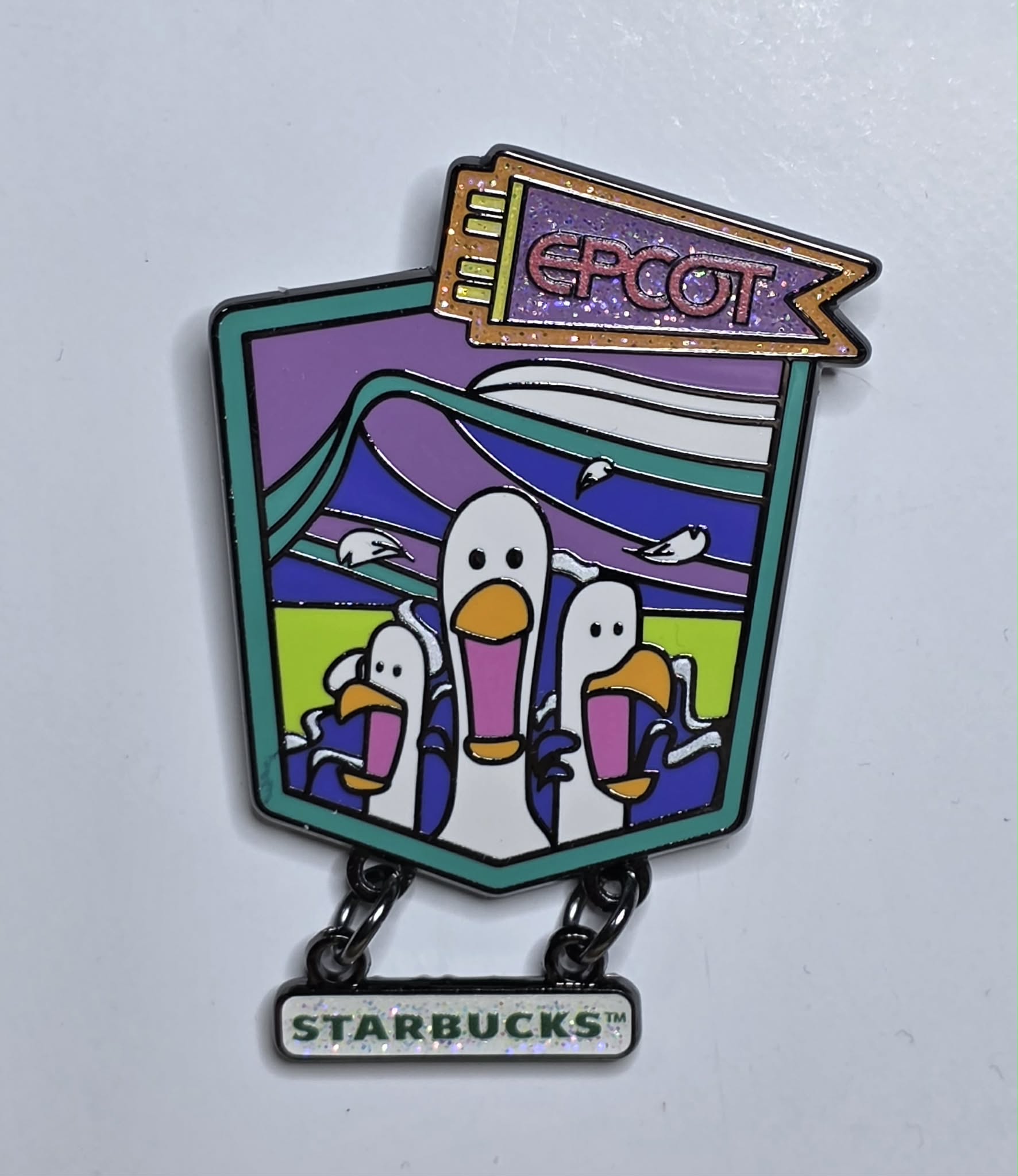 Disney Starbucks Neon Mystery Collection Series 2 pin featuring seagulls from "The Seas with Nemo & Friends" attraction at EPCOT