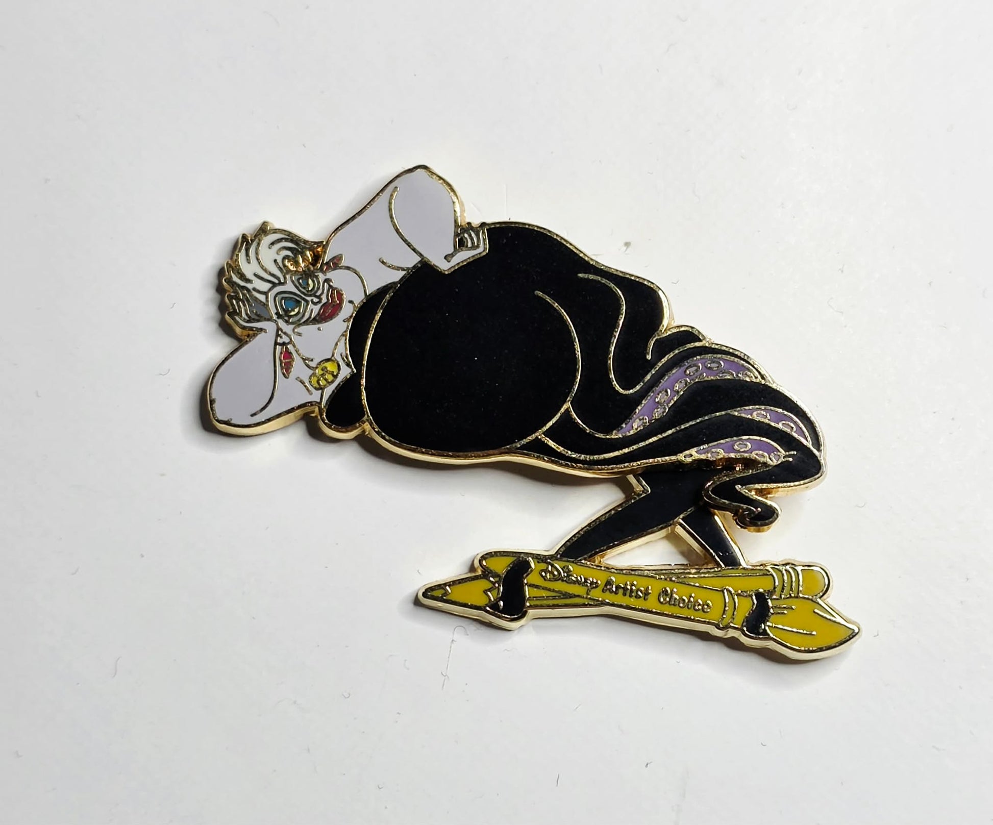 The pin features the iconic villain Ursula from the Disney movie The Little Mermaid.