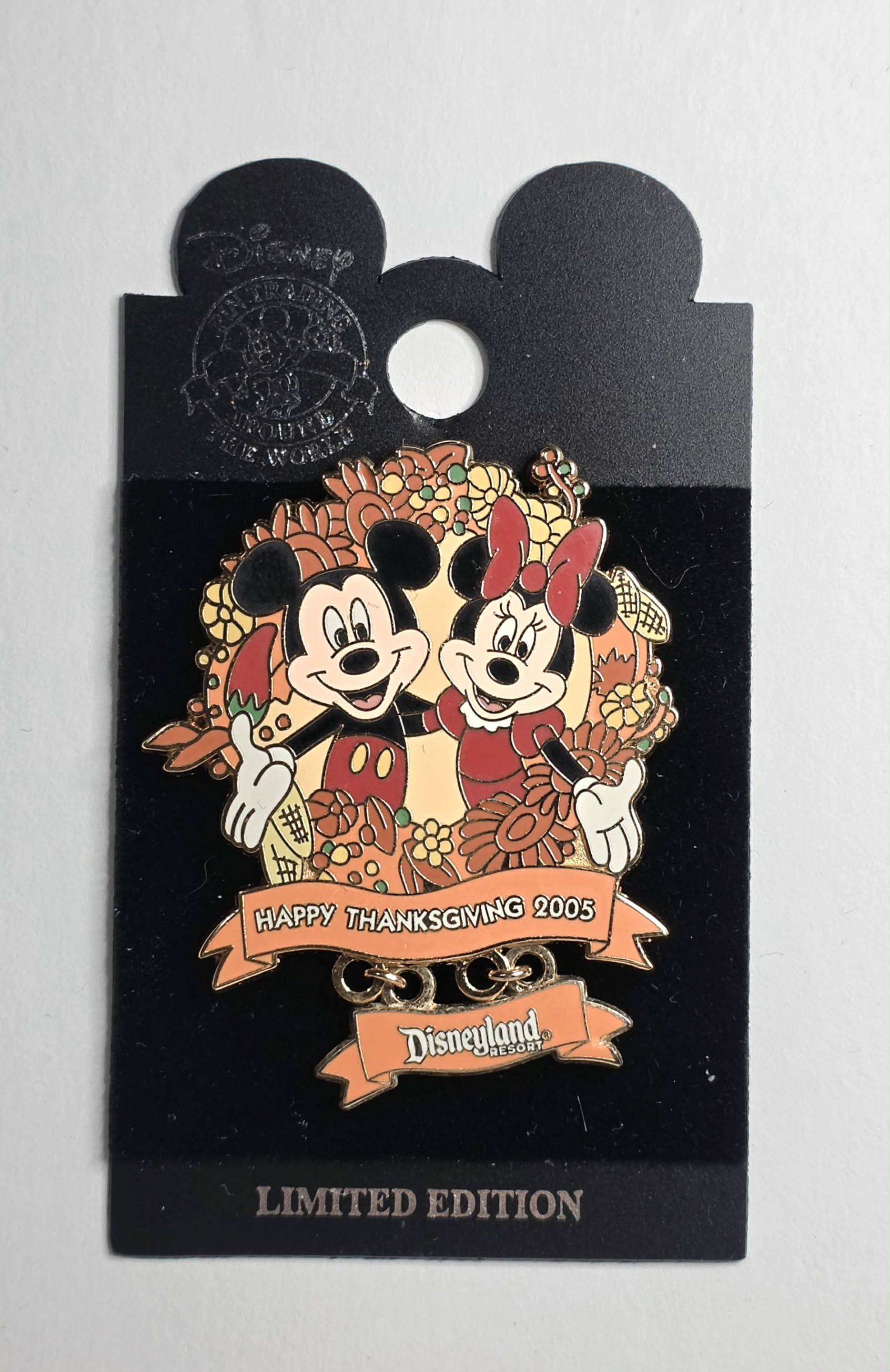 Disneyland Resort 2005 Thanksgiving pin featuring Mickey and Minnie Mouse.