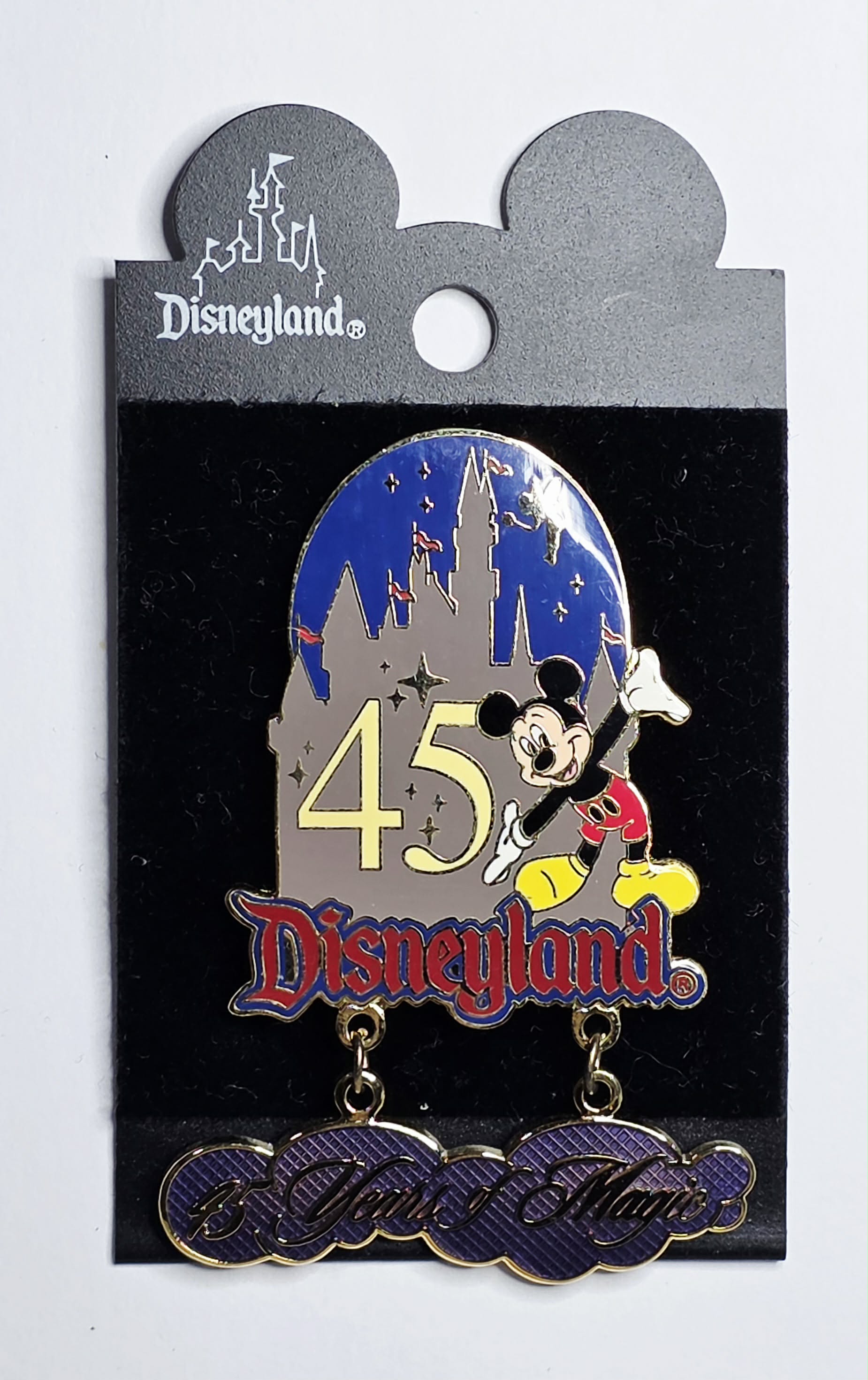 Disneyland 45 Years of Magic Dangle Mickey Mouse pin. This collectible pin was released to commemorate the 45th anniversary of Disneyland in 2000.