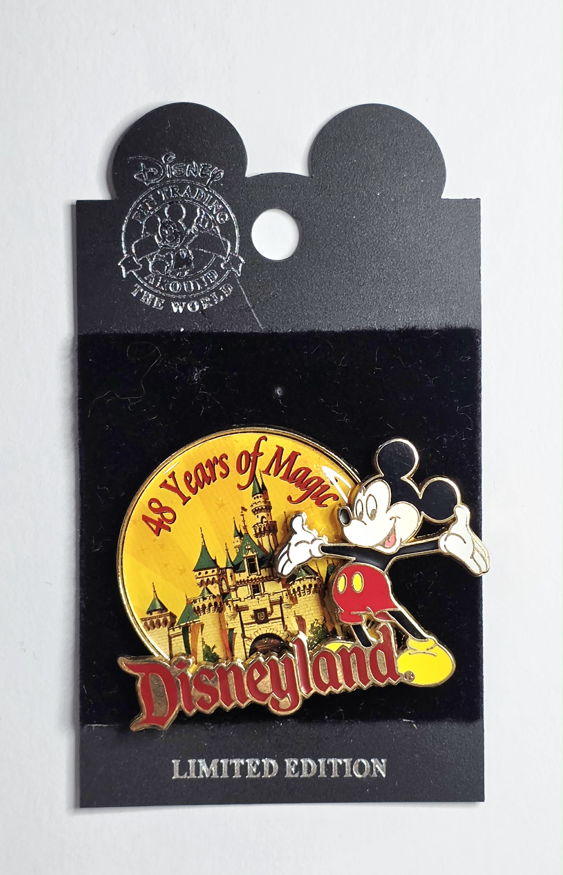 Disneyland 48th Anniversary trading pin featuring Mickey Mouse in front of Sleeping Beauty's Castle. This limited edition pin was released on July 17, 2003, the actual date of Disneyland's 48th anniversary.