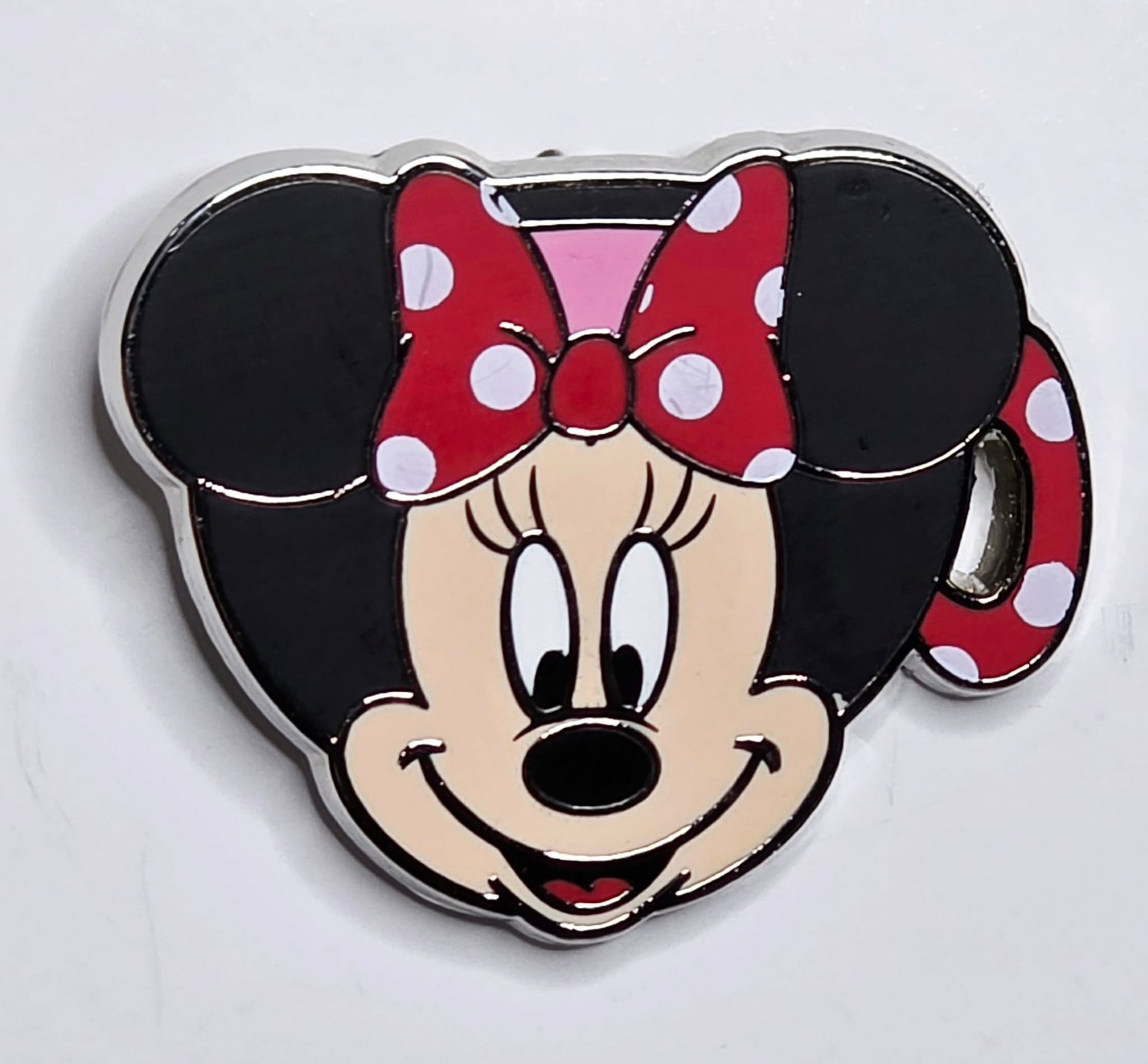 This pin features Minnie Mouse reimagined as a drinking mug, complete with her signature red bow with white polka dots. The mug design captures Minnie’s classic look in a fun, collectible style that’s perfect for Disney pin traders and Minnie fans alike.