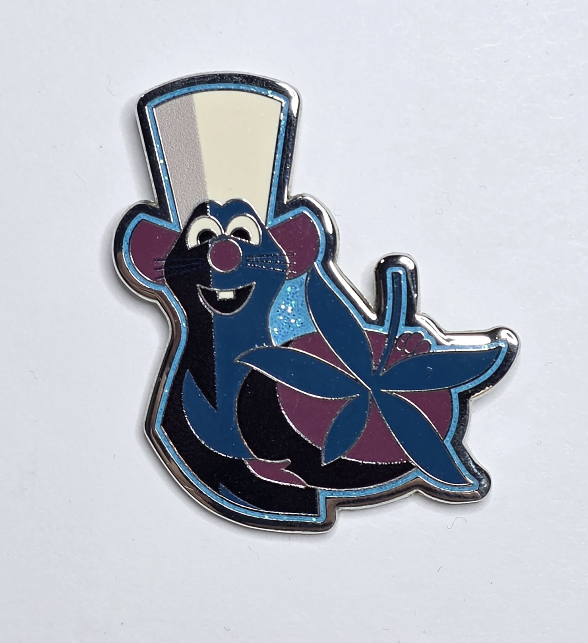 The pin depicts Remy wearing a chef's hat and holding a large leaf with a berry.