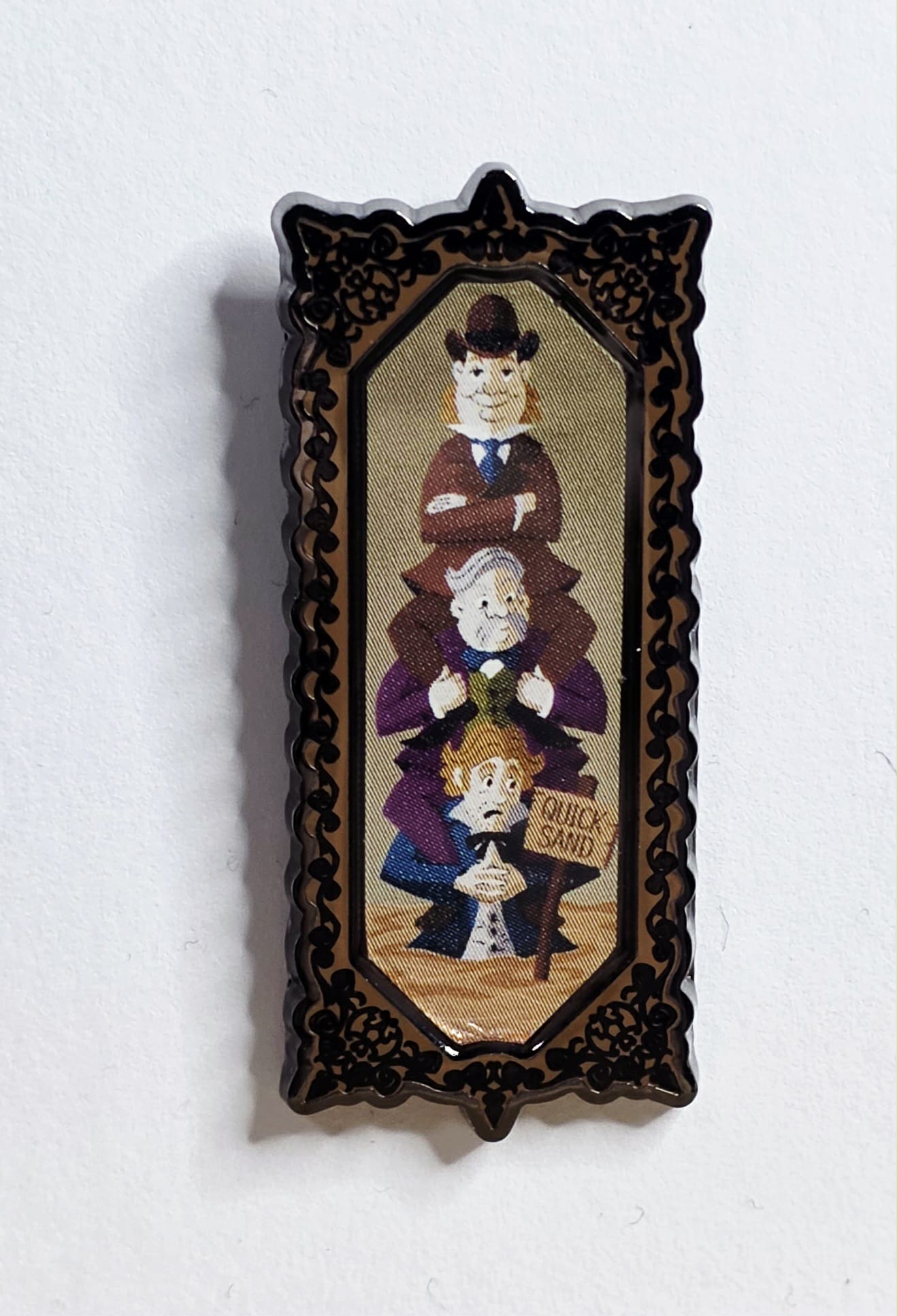 Disney Haunted Mansion "Quicksand Men" Stretching Portrait enamel pin, often part of a Loungefly mystery or blind box collection. The pin features the iconic artwork from the stretching room of the Disney Parks' Haunted Mansion attraction and the 2023 film.