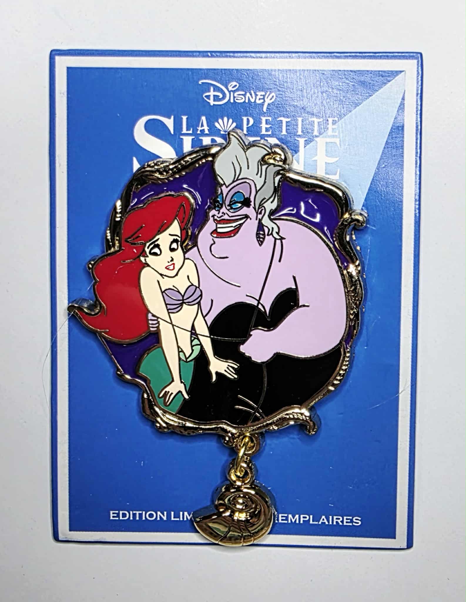 Ariel and Ursula from Disney's The Little Mermaid. This particular pin is part of the "La Petite Sirène" (The Little Mermaid) Paris Event DLRP series and is a Limited Edition (LE) of 425 pieces.
