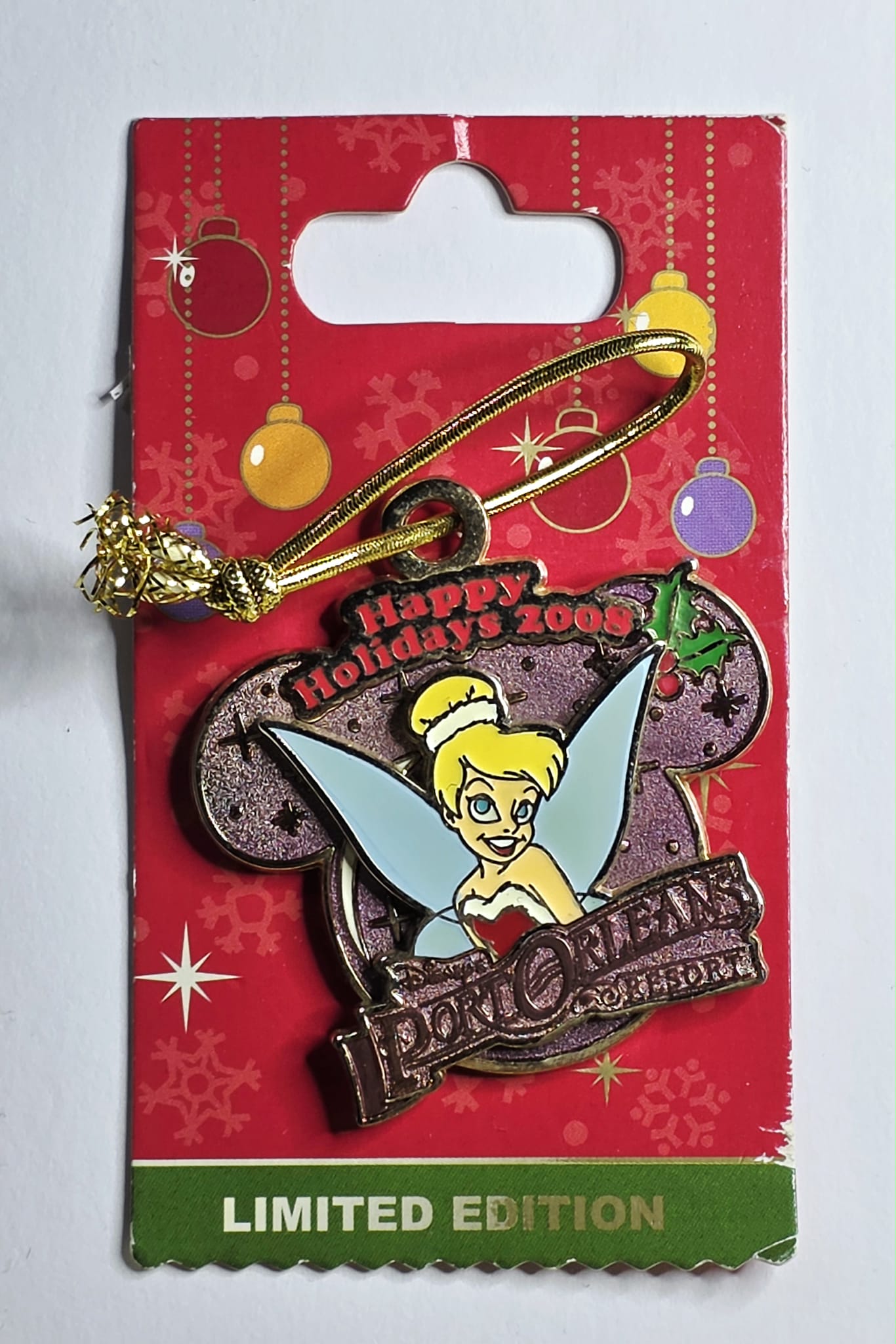 Happy Holidays 2009 Tinker Bell pin from the Port Orleans Resort, featuring glitter and a string to be used as an ornament.